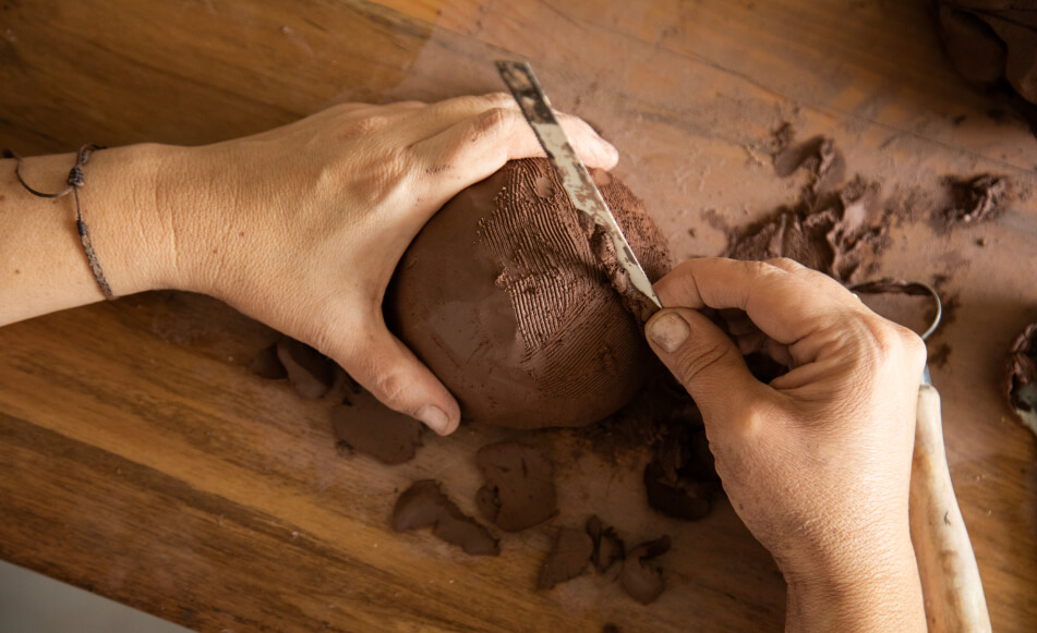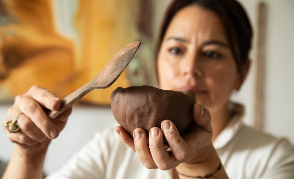 La disciplina del amasar le da templanza. Y equilibrio. Reconoce que trabajar la arcilla combina una energía y una fuerza masculinas que se le suman a la feminidad del horneado y el terminado de una pieza. Cuando lo hace, sola, siempre sola, confronta estas dos energías y las armoniza. Trabajar cerámica para ella es entender de maleabilidad, es decirse a través de esta dura fragilidad que es el barro que no podemos ser tan duros con nosotros mismos, es su metáfora para agradecerle a la vida que le dio la herramienta para jugar y para soltar.