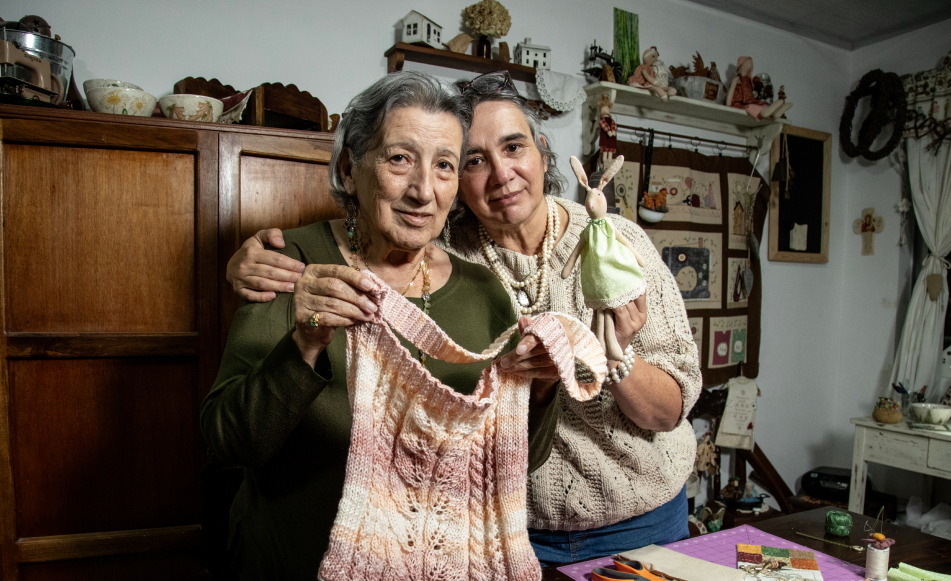 Mejor costurero que taller, se apura a decir Elisa, confiriéndole a este espacio que decidieron volver nido ese halo de intimidad y confianza que ofrece el estar entre hilos y bordados. Madre e hija, Clemencia y Elisa son las herederas de las agujas de sus abuelas, María y Felicidad. Y aunque siempre bordaron y tejieron, cada una por su lado, la vida les permitió juntarse hace ya una década y hacer de este gusto por el oficio, un proyecto de vida. Elisa es quien toma la palabra, acaso para romper el hielo, mientras su mamá mira con detenimiento, en silencio observador. Y apenas siente que el clima lo merece, abre su caja de los recuerdos. Y sí que vale la pena la espera, porque nos encontramos con que quizá no es incomodidad lo que se le ve, sino que no está ocupando las manos y seguramente piensa que está perdiendo el tiempo.