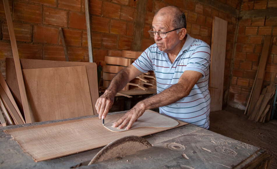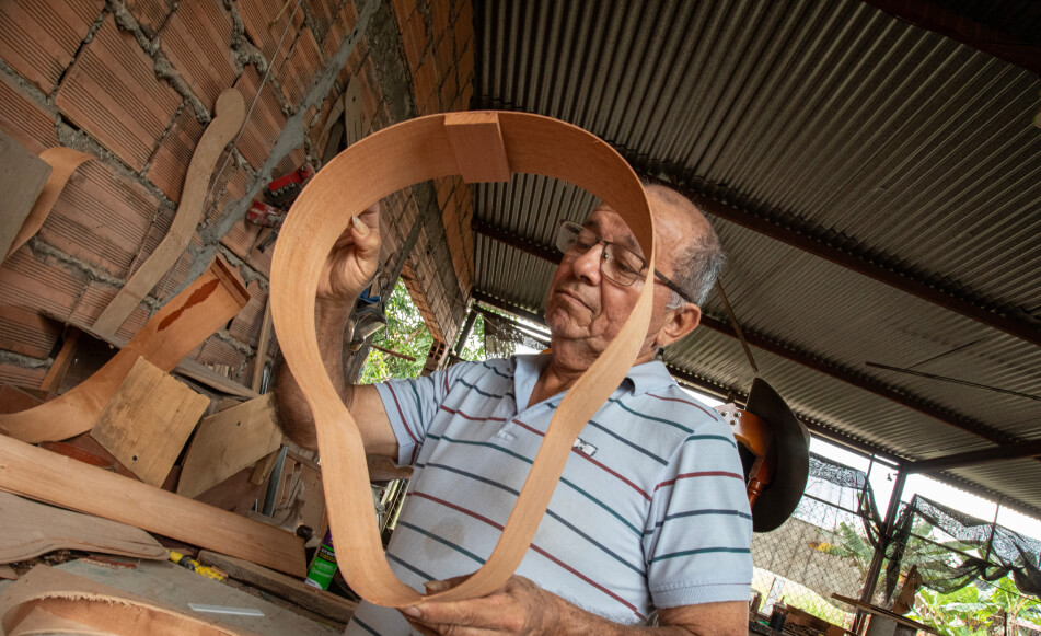 Y si ya pasaron más de cuarenta años desde que este artesano empezó en el oficio de las arpas, puede además decir con mucho orgullo que desde hace 25 años también fabrica bandolas, cuatros y guitarras. Aprendió de la mano del maestro Hernán Bastidas, uno de los primeros luthier de la Fundación Canto por la vida de Ginebra, Valle y, desde entonces, amplió su repertorio. Hoy en día no solo elabora instrumentos desde ceros sino que también repara los viejos, y es común verlo tocando en las noches llaneras, con los conjuntos amigos. No canta, pero sigue interpretando los mismos ritmos de su tierra con los que empezó, la periquera, el joropo, el gabán, el zumba que zumba y el carnaval. Sabe que el oficio no es para todos, sino para el que realmente le guste y esté dispuesto a dedicarse a aprender. Así les ha enseñado a sus tres hijas y a su hijo, que se defienden todos en la música, y a los pupilos que ha entrenado, repartidos hoy en día entre Aguazul, Cumaral y Monterrey. Lo dicho, estamos frente a un tipo con suerte.