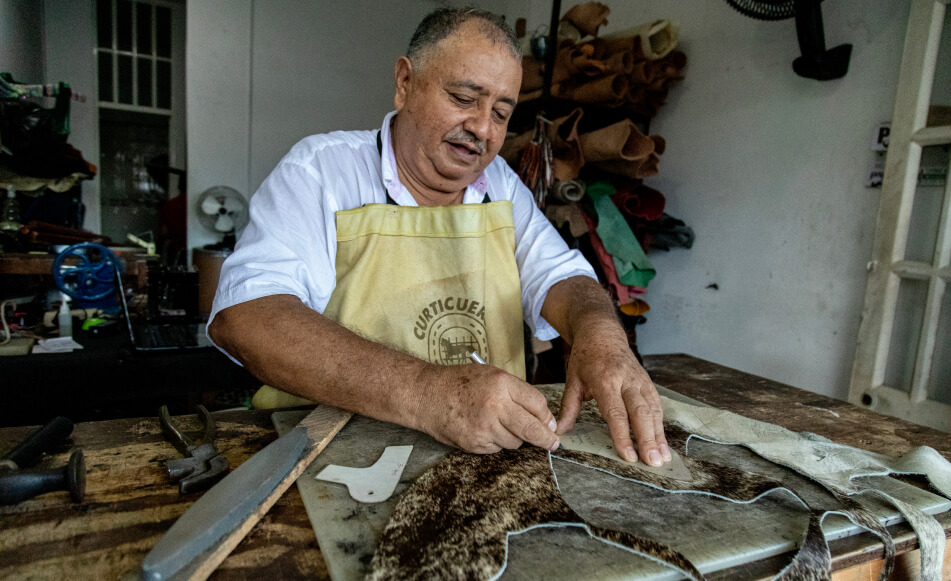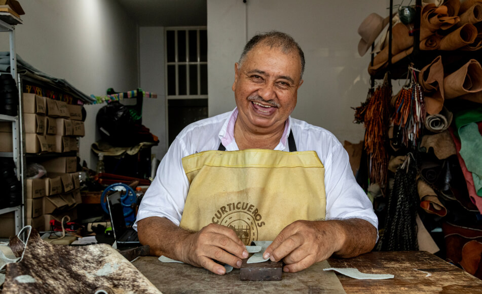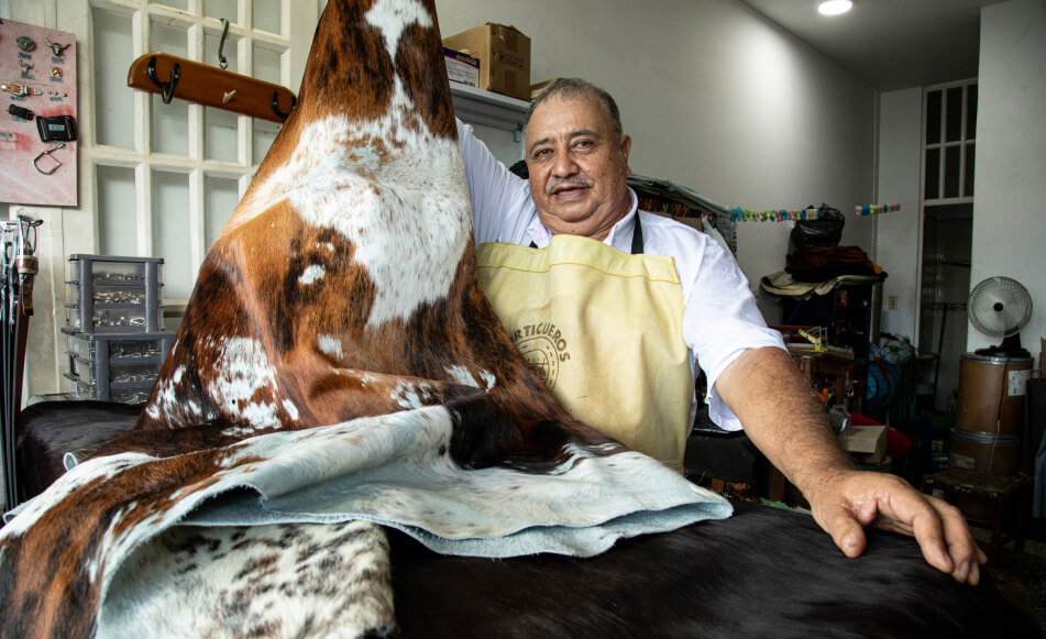Cuando este artesano va a Bogotá se embelesa con los cueros del Restrepo, le vienen a la cabeza mil ideas y quisiera llevárselos todos para hacer correas, llaveros, billeteras y, por supuesto, cotizas llaneras. Él, que se ha caído mil veces, y mil veces se ha levantado, vive feliz, sin ser rico, pero con la tranquilidad de que está en su salsa. Como se lo demuestra toda una vida dedicada al cuero, esa que empezó con el empujón amoroso de su hermana.