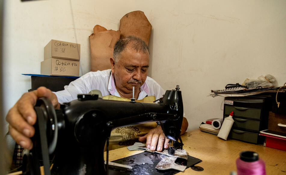Este artesano lleno de historias, que ha sido hasta policía, reconoce que no estaría en donde está sin su hermana, Lidia Castañeda, a quien extraña todos los días, alma bendita, como la nombra, desde que falleció por culpa del cáncer. Y si hay algo transversal en su historia, es su amor por su hermana mayor. Cuando él era apenas un jovencito, sin mucha idea de lo que quería en la vida, Lidia se casó con un hombre que tenía una curtiembre a las afueras de Villapinzón y se lo llevó a trabajar con ellos. Sin saberlo, se lo estaba presentando al mundo al que pertenecería: el de los cueros. Esas curtiembres, que fueron de las primeras en procesar cueros, más tarde serían clausuradas por contaminar el río, y la familia se mudaría a Bogotá para montar nuevas curtiembres al sur de la ciudad. José Israel llegó con ellos, hizo carrera de policía y se fue a prestar servicio en Medellín por cinco años antes de establecerse en Pereira.
