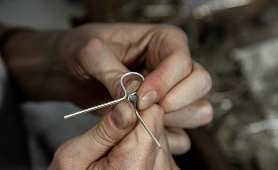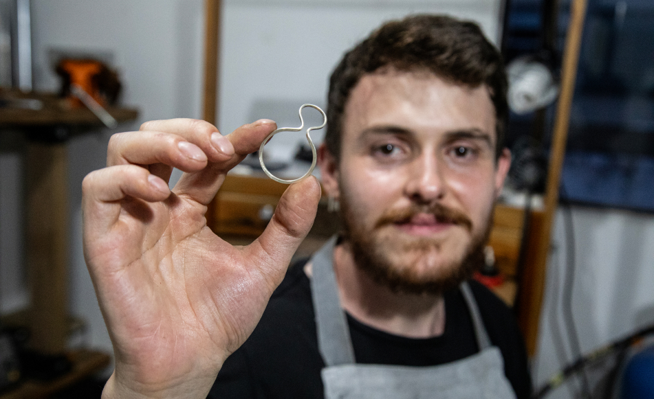 Se toma el tiempo necesario para que los hilos metálicos con los que trabaja queden perfectos, las formas que delinea simétricas, y las esquinas rectas. Se preocupa por el terminado de sus piezas porque sabe que, casi siempre, el trabajo puede estar más pulido. Se le facilita ese acercamiento a la práctica por su forma de ser perfeccionista. Es por eso que prefiere terminar él mismo todas las piezas, y si bien el perfeccionismo tiene sus ventajas y desventajas (la dificultad de encontrar un ayudante idóneo y delegar, por ejemplo), él le encontró un cauce a su carácter en la creación de joyas.