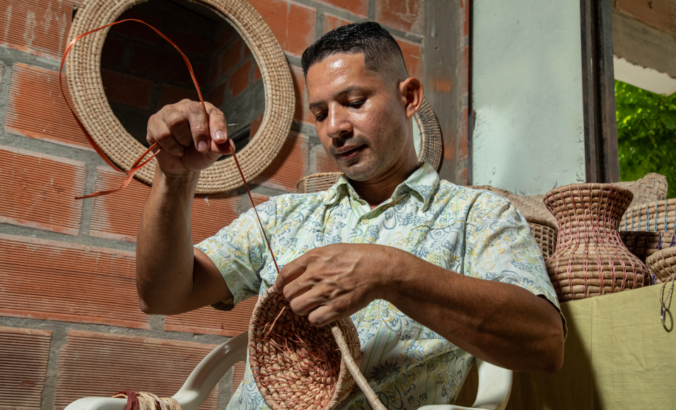 Siguiente parada: Montería, en Córdoba. Visita a Duberney Padilla, artesano ejemplar que, a dondequiera que la vida lo ha llevado, nunca se ha olvidado de la calceta de plátano. Ten en cuenta que estarás a tan solo dos horas de las playas blancas y aguas cristalinas de Coveñas y Tolú, un paraíso caribeño que vale la pena conocer.