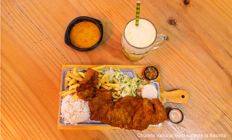 La chuleta valluna es un plato icónico de la región que consiste en una chuleta de cerdo empanizada y frita, acompañada de arroz, tajadas de plátano maduro, aguacate y ensalada. Es una combinación de sabores y texturas deliciosas. Pruébala en el restaurante Casa Vieja de Cartago.